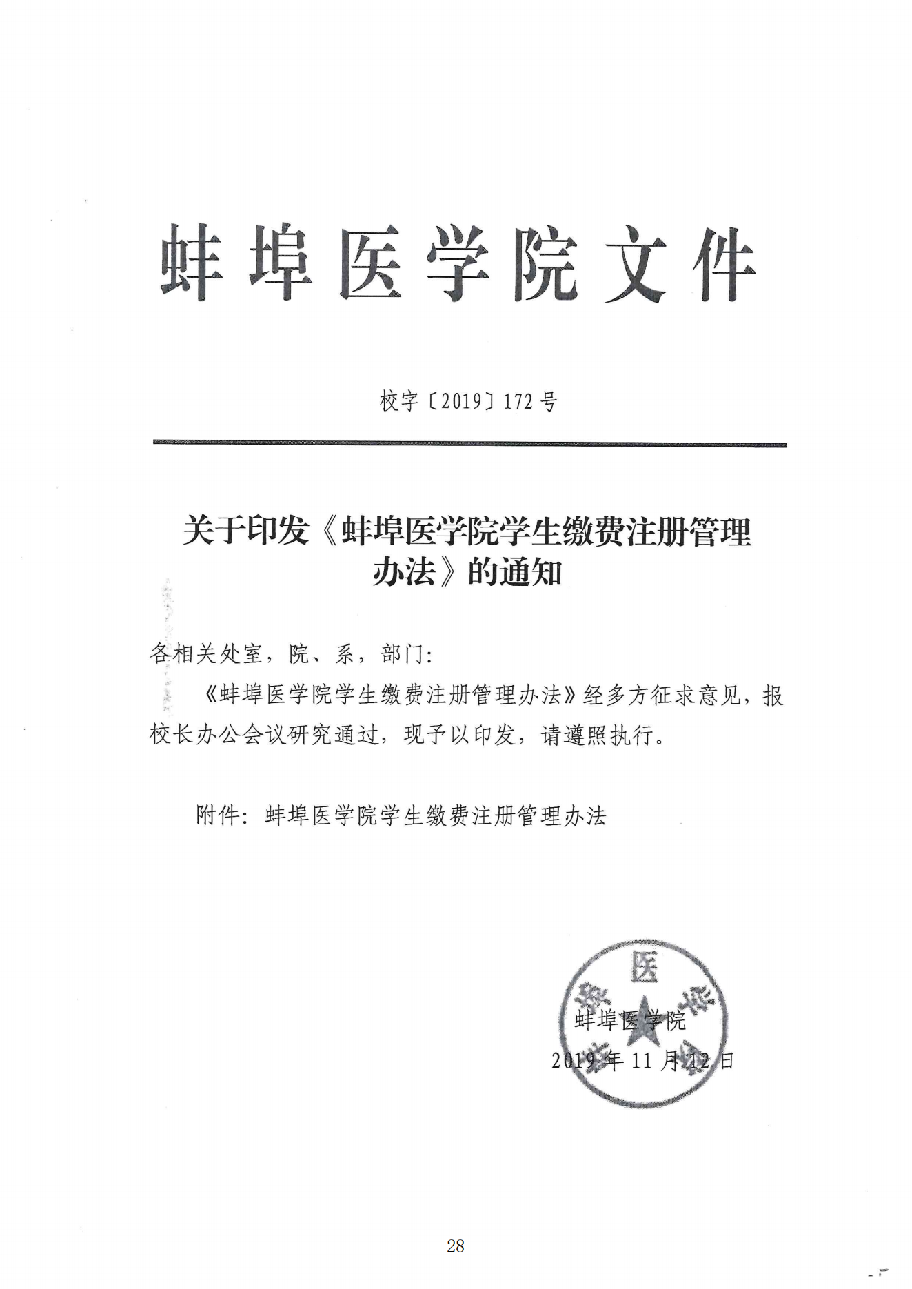 关于印发《蚌埠医学院学生缴费注册管理办法》的通知